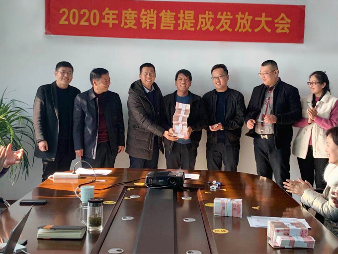 2021年1月2日,上午11點30分左右,河北鎂神科技股份有限公司在會議室召開業(yè)務(wù)員提成發(fā)放大會。一摞摞的紅色人民幣整齊的擺放在桌子上,看著..