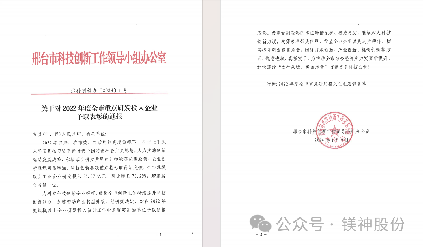 鎂神科技在經過嚴格的評審和選拔后,成功入選了2022年市重點研發投入企業表彰名單。這一榮譽標志著我們對科技創新的持續投入和卓越成果得到了社會的廣泛認可和高度評價。 ..