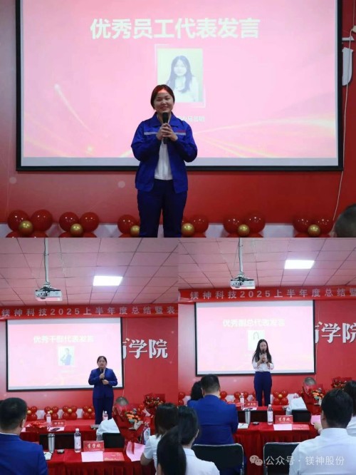 他們在平凡的崗位上書寫不凡,是匠心筑夢的踐行者、是協(xié)同作戰(zhàn)的排頭兵,更是全體鎂神人的精神標(biāo)桿。主持人宣讀2025年上半年度優(yōu)秀員工、優(yōu)秀干部名單,劉江花、馬銀青等獲獎?wù)咭来紊吓_。