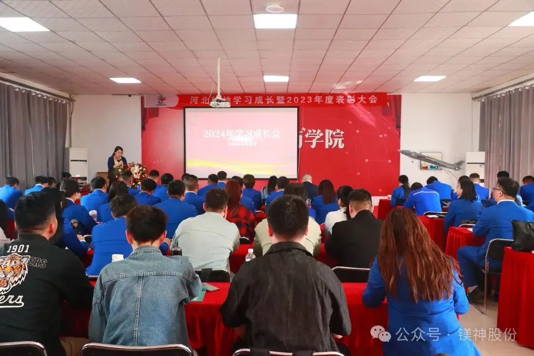 2024年4月17日,伴隨著全體員工鏗鏘有力的宣誓聲和氣勢磅礴的歌聲,河北鎂神學習成長暨2023年表彰大會拉開了帷幕……