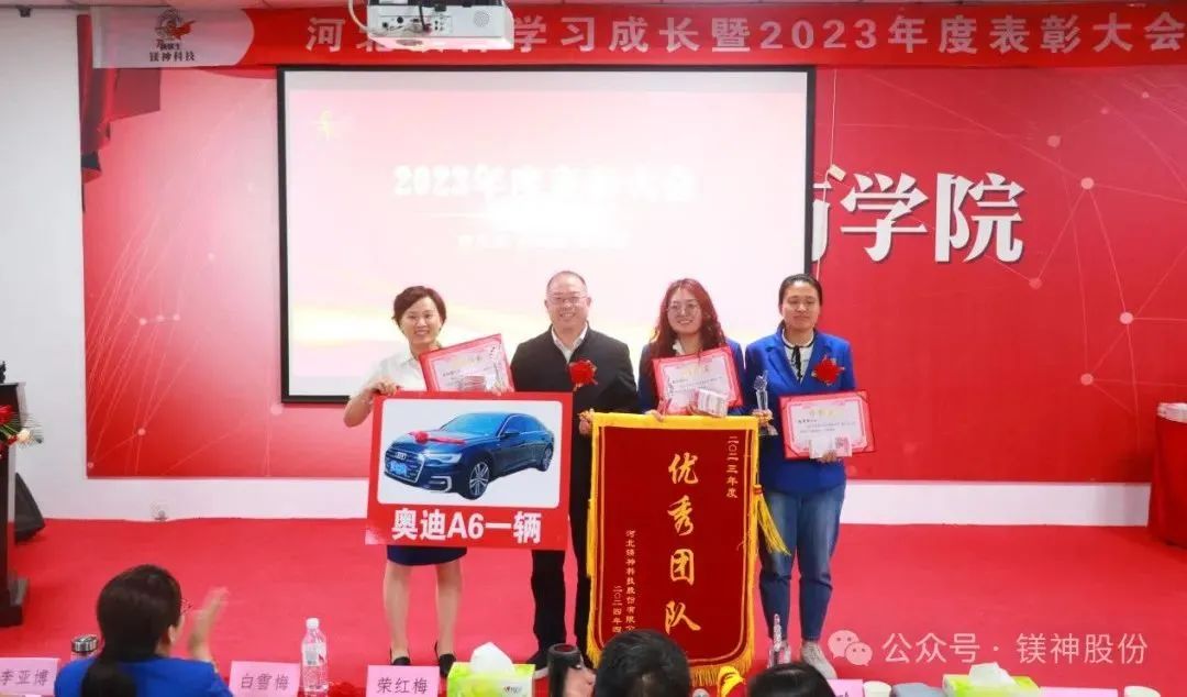 4月19日,河北鎂神科技股份有限公司2023年度表彰大會(huì)圓滿落幕,共發(fā)放獎(jiǎng)勵(lì)600余萬,其中提成發(fā)放180余萬,發(fā)放優(yōu)秀員工、干部和團(tuán)隊(duì)獎(jiǎng)金119萬,專項(xiàng)獎(jiǎng)勵(lì)發(fā)放137萬,分紅發(fā)放160萬。現(xiàn)金560余萬,另發(fā)放奧迪A6一輛!