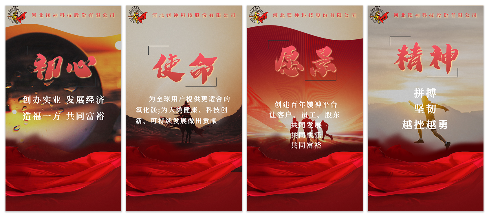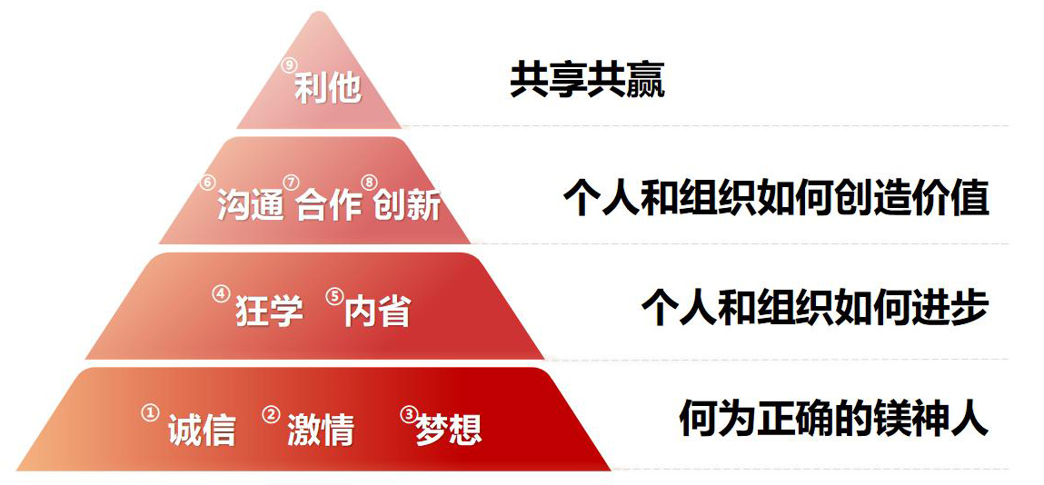 鎂神科技以創(chuàng)辦實(shí)業(yè),發(fā)展經(jīng)濟(jì),造福一方,共同富裕為初心;秉承著為全球用戶提供更適合的氧化鎂,為人類健康、科技創(chuàng)新、可持續(xù)發(fā)展作出貢獻(xiàn)的使命;有著創(chuàng)建百年鎂神平臺(tái),讓客戶、員工、股東共同發(fā)展、共同快樂、共同富裕的美好愿景;培育出拼搏、堅(jiān)韌、越挫越勇的鎂神人。鎂神人用誠(chéng)信、激情、夢(mèng)想、狂學(xué)、內(nèi)省、溝通、合作、創(chuàng)新、利他的價(jià)值觀向客戶、社會(huì)各界朋友詮釋著鎂神的企業(yè)文化!