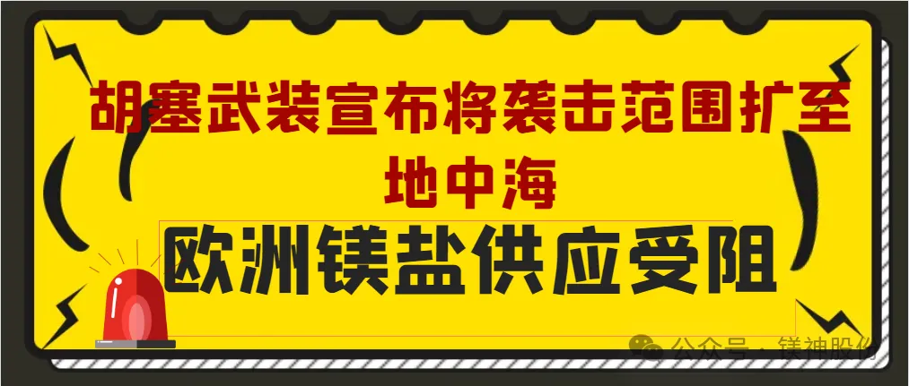 胡塞武裝宣布將襲擊范圍擴至地中海,歐洲鎂鹽供應受阻