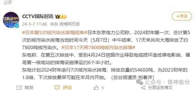 根據(jù)東電公布的最新計(jì)劃,2024年度擬分7次排出5.46萬(wàn)噸核污染水,是2023年度的約1.7倍。日本國(guó)內(nèi)外民眾持續(xù)抗議核污染水排海,但日本政府和東京電力公司無(wú)視民眾怒火,執(zhí)意排污,引發(fā)廣泛擔(dān)憂。多家日本企業(yè)(如:日本神島化學(xué)有限公司、日本協(xié)和化學(xué)工業(yè)有限公司、日本富田制藥株式會(huì)社、日本宇部株式會(huì)社、日本達(dá)泰豪化工工業(yè)株式會(huì)社等)正在使用被核廢水污染的海水生產(chǎn)鎂鹽產(chǎn)品(如:碳酸鎂、硫酸鎂、氫氧化鎂、氧化鎂等)的事實(shí)引起了人們的關(guān)注。