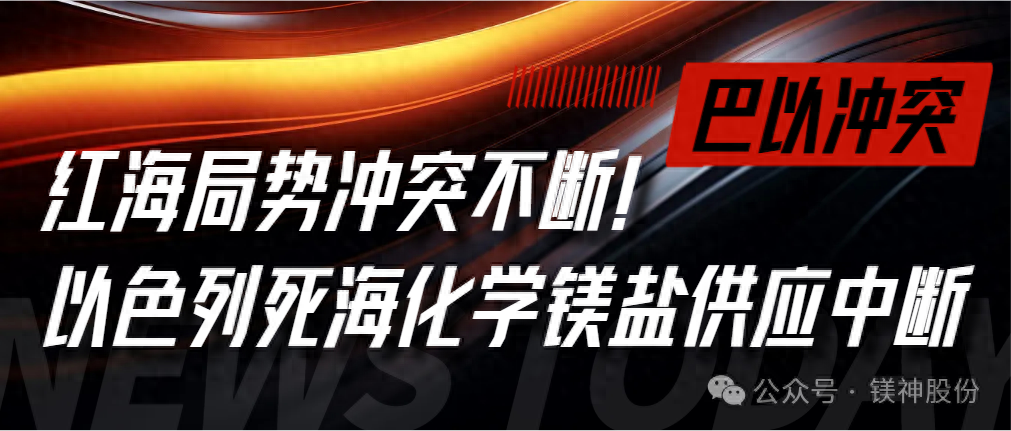 最新消息,也門胡塞武裝發(fā)言人葉海亞·薩雷亞當(dāng)?shù)貢r間27日稱,胡塞武裝對美國海軍部署在紅海的2艘驅(qū)逐艦發(fā)動了無人機襲擊,并準(zhǔn)確擊中目標(biāo),紅海緊張局勢再度升級。且胡塞武裝發(fā)言人葉海亞·薩雷亞之前也宣布向所有向以色列輸送貨物的船只發(fā)起襲擊。受此影響,死海化學(xué)溴業(yè)有限公司(DEAD SEA BROMINE COMPANY LTD)鎂鹽生產(chǎn)中斷、產(chǎn)品運輸成本暴漲,給全球鎂鹽供應(yīng)鏈帶來不良影響。